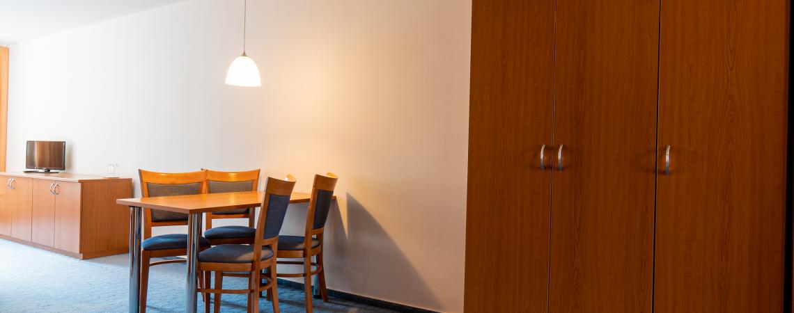 The Comfort Family Room has a large living area with a sofa bed, TV and Wifi and a private kitchenette. A separate bedroom with a queen-size bed gives pleasant privacy after day trips to the Tatras with the family.