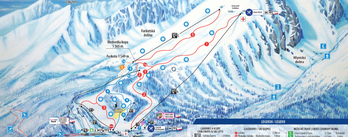 The highest point in the resort is Solisko, from which you can enjoy unique views of the Podtatra basin, Kriváň and the Low Tatras. There is also a buffet and a mountain hut with hot food.