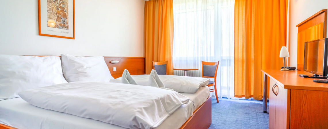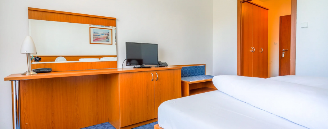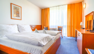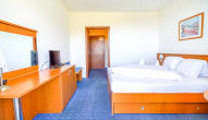 Dvojlôžková izba s manželskou posteľou alebo dvomi oddelenými lôžkami a prístelkou. Niektoré dvojlôžkové izby majú balkón. Prístelka je vhodná aj pre dospelých. Izba má vlastnú kúpeľňu so sprchovým kútom, TV a WiFi.