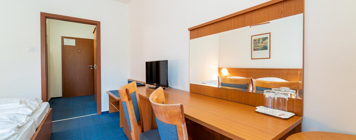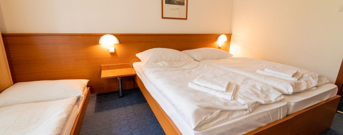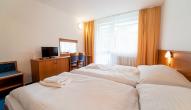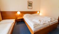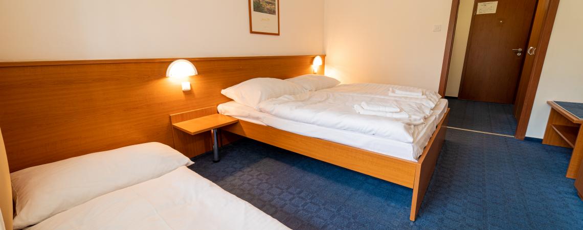 Veľká, priestranná rodinná izba so štyrmi pevnými lôžkami, ktorú tvoria 2 separátne izby, každá s vlastnou sprchou a WC. Izba má TV a WiFI.