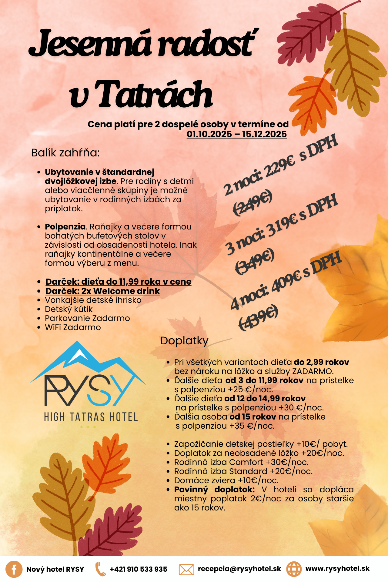 Užite si krásnu tatranskú prírodu v termíne od 1.10.2025 do 15.12. 2025.